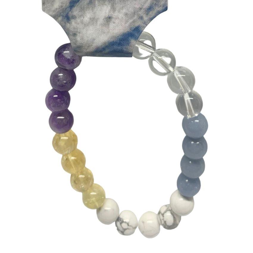 Each bracelet features 8mm high-grade gemstone beads and is designed in partnership with "Made by Earth" in Melbourne using strong elastic. The Air Bracelet contains: