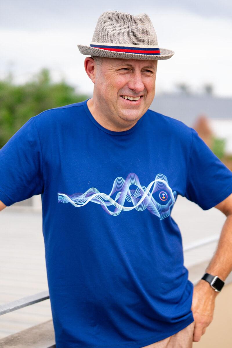 Navy Blue Bamboo Lifestyle T Shirt for Men featuring the 3rd Eye Chakra frequency 852
