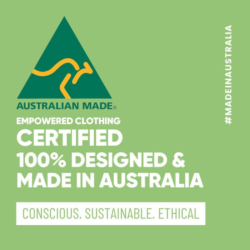 Accredited by Made in Australia and Ethical Clothing Australia.