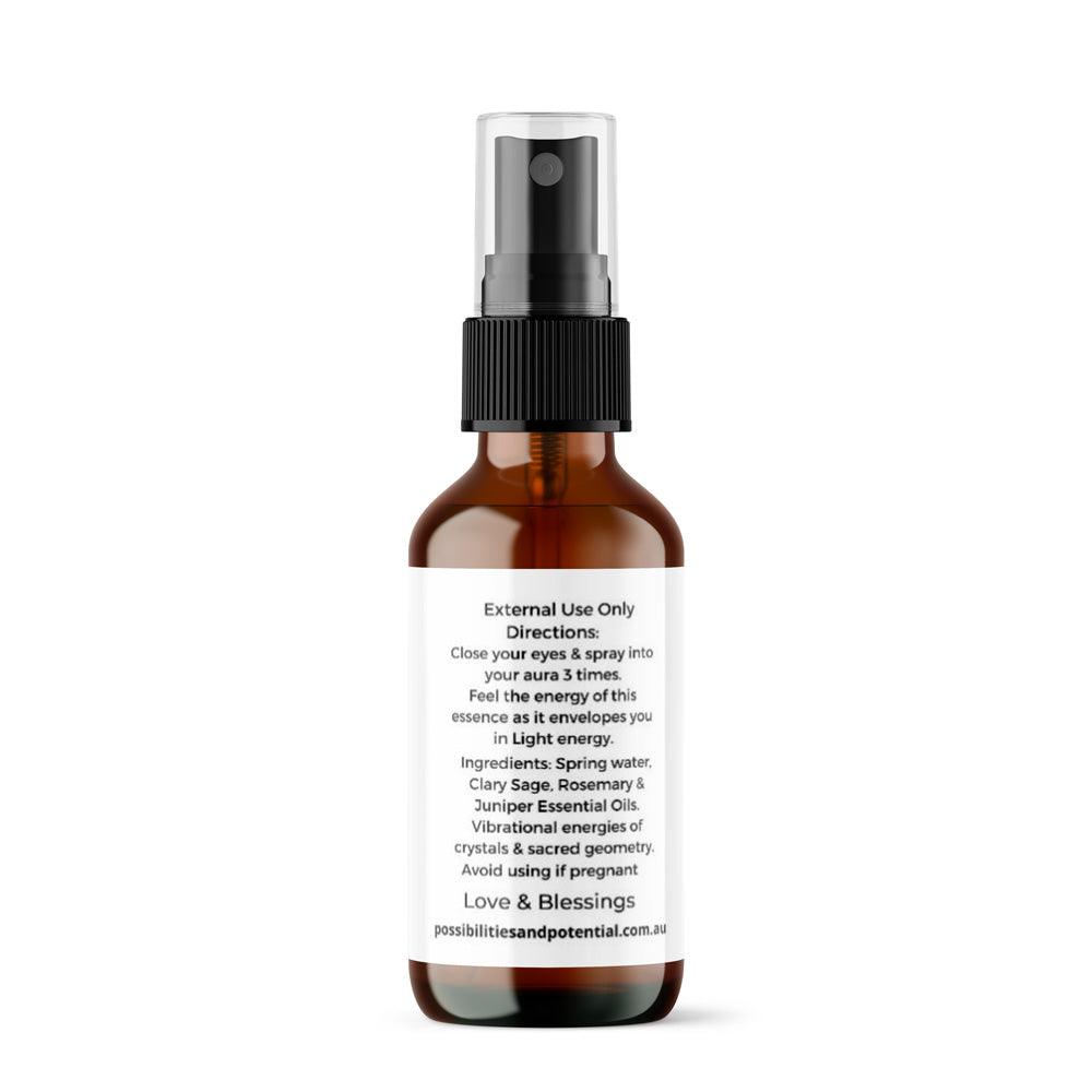 These possibilities and potential Sprays are expertly crafted essences, designed to aid and support individuals on their wellness paths. Created with care and the goal of unifying Mind/Body/Spirit, these sprays feature essential oils, spring water and vibrational energy of crystals, colour, sound and sacred geometry.